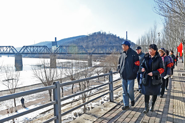 由于氣溫下降,在冰封的河面上行走和垂釣十分危險,為防止險情發(fā)生,保障群眾的人身安全。日前,本溪市溪湖區(qū)河?xùn)|街道河沿社區(qū)組織20名黨員和調(diào)解員每天巡邏,對不安全現(xiàn)象進行監(jiān)督。