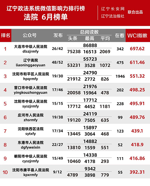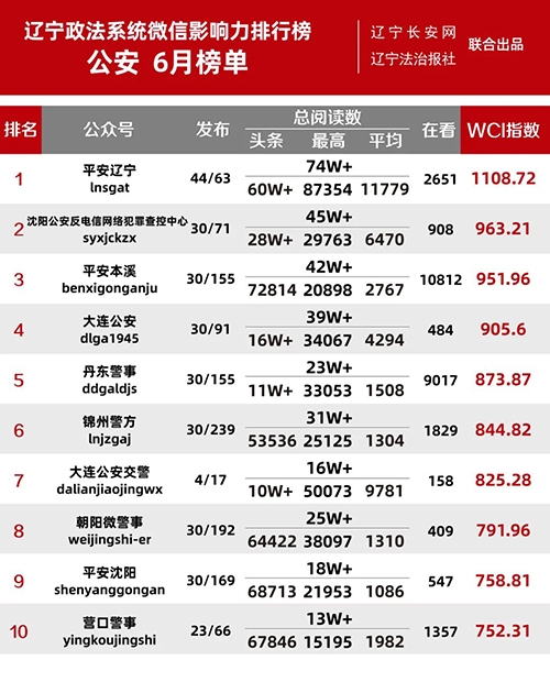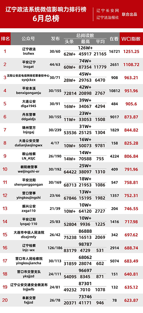 “遼寧政法系統(tǒng)微信影響力排行榜”