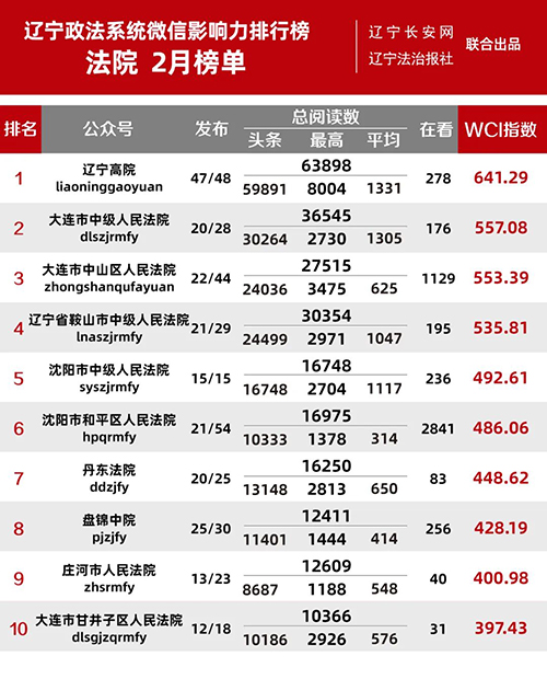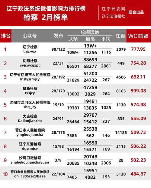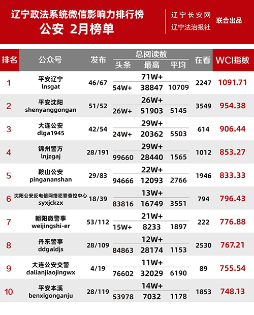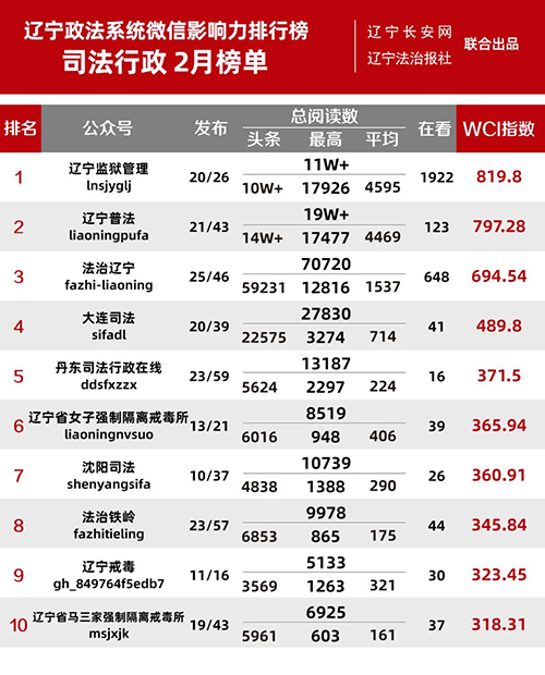 “遼寧政法系統(tǒng)微信影響力排行榜”