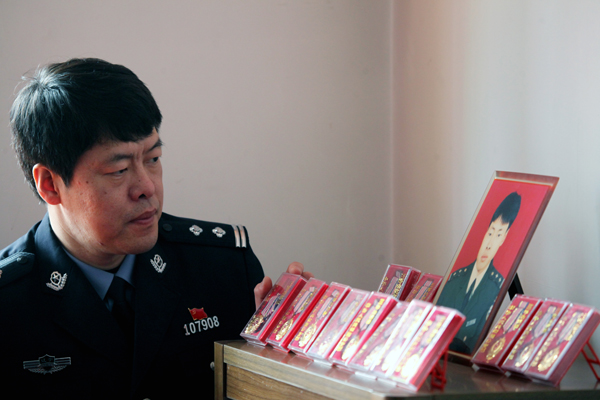 3月29日,林鵬和同事懷著崇敬的心情整理著趙建勇老主任的遺物。原沈陽市公安局鐵西分局紀(jì)檢室副主任趙建勇因工作繁重,積勞成疾,近半年的治療未能遏止病情的惡化,3月19日,趙建勇離開了他的戰(zhàn)友們。林鵬火線受命,走上了老大哥的崗位,這是他接任的第三天,紀(jì)檢工作肩負(fù)更加重要的使命,需要?jiǎng)傉话ⅲ瑢?duì)林鵬而言更是鐵血的錘煉。又是一年清明時(shí),這個(gè)漢子也流露出他的柔情,他想起了公安戰(zhàn)線上無私奉獻(xiàn)的戰(zhàn)友,想起了為公安事業(yè)、為人民犧牲的弟弟林濤……