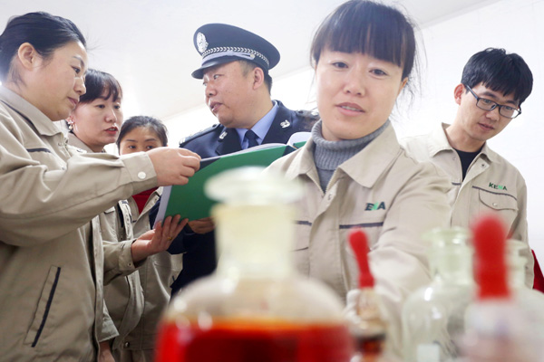 日前,臺安縣公安局禁毒大隊對轄區(qū)易制毒化學品生產、銷售及使用企業(yè)開展安全檢查,民警針對儲存、運輸、貨源渠道、使用管理等進行拉網(wǎng)式排查,以預防企業(yè)易制毒化學品流入社會帶來的安全隱患。