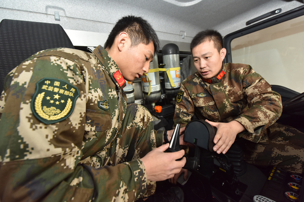 為了讓張成旭更快地熟悉特種車輛,崔鳳杰還為張成旭制定了一系列學(xué)習(xí)計(jì)劃。只要有空,就給張成旭講舉高消防車、搶險(xiǎn)救援消防車的回轉(zhuǎn)半徑、轉(zhuǎn)速的性能參數(shù),讓張成旭熟悉車輛的基本情況以及日常管理的方法。不僅要求張成旭要對(duì)執(zhí)勤車輛能夠會(huì)操作使用,更要會(huì)檢查、會(huì)維護(hù)保養(yǎng)、會(huì)排查一般的故障。崔鳳杰說,比如在舉高平臺(tái)車的升降操作,并檢驗(yàn)升降平臺(tái)是否正常穩(wěn)定,水炮是否完好。張成旭說:“師傅一直嚴(yán)格要求我,確保能夠熟悉操作特種作戰(zhàn)裝備,真正把保護(hù)人民的生命財(cái)產(chǎn)安全作為己任,做好自己的本職工作。”