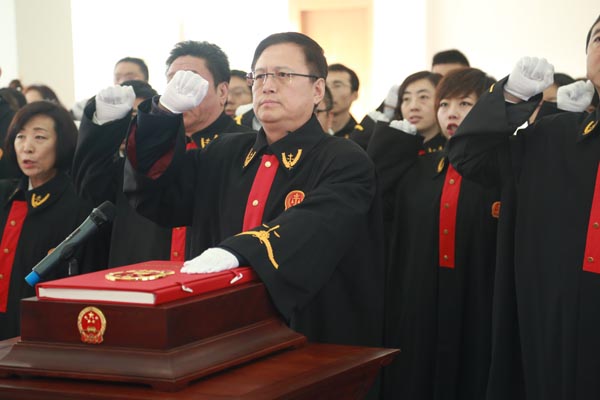 沈陽市和平區(qū)人民法院院長李清杰(中)帶領(lǐng)員額法官宣誓