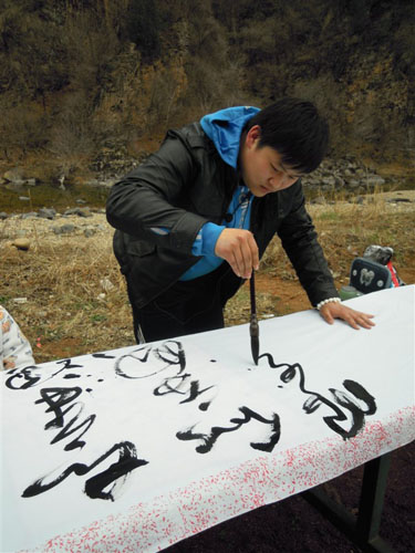 1997年香港回歸,劉光焱參加了全市千人千米現(xiàn)場書畫大賽,一千名入圍選手在遼陽市政府門前馬路上現(xiàn)場創(chuàng)作。8月份的柏油馬路曬得有些發(fā)軟,他跪在馬路上,以“我愛香港”四個大字一舉奪冠,成為當天書法組的第一名。“那一年我真正愛上了書法,之后,我連續(xù)三年奪得了遼陽市少年兒童書畫比賽書法組第一名的桂冠,那時候我驕傲地認為,我是全市書法寫得最好的少年!”
