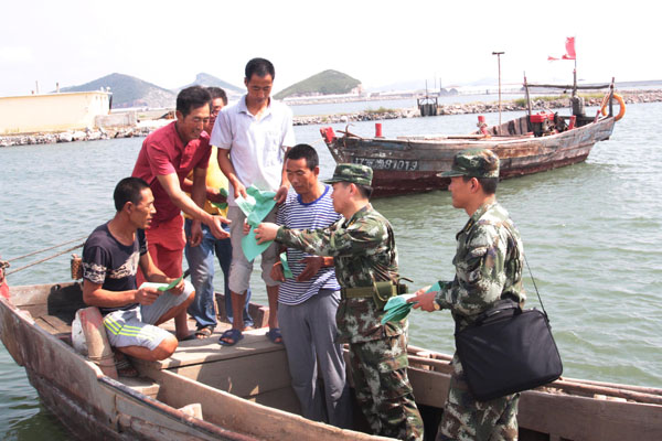 9月9日,大連公安邊防支隊(duì)派出50多個(gè)工作小組,深入2000余公里長(zhǎng)的邊防轄區(qū),通過(guò)宣傳海防治安管理相關(guān)法律知識(shí)和采集漁船民個(gè)人基本信息,開(kāi)展為期40天的“忠誠(chéng)保安全”主題活動(dòng),營(yíng)造安全、文明、和諧的邊防治安環(huán)境。